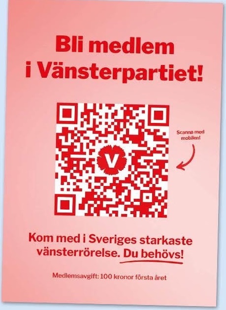 Det går att förändra världen om man vill. Fast knappast ensam. Ska det bli ordentligt gjort måste vi göra det tillsammans. Vänsterpartiet behöver fler medlemmar, fyll i formuläret nedan så skickar vi så snart som möjligt mer information och ett inbetalningskort eller scanna bilden med kameran på telefonen.